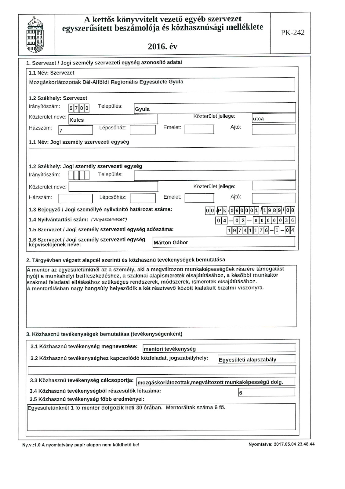 Mozgaskorlatozottak Del Alfoldi Regionalis Egyesulete 2017