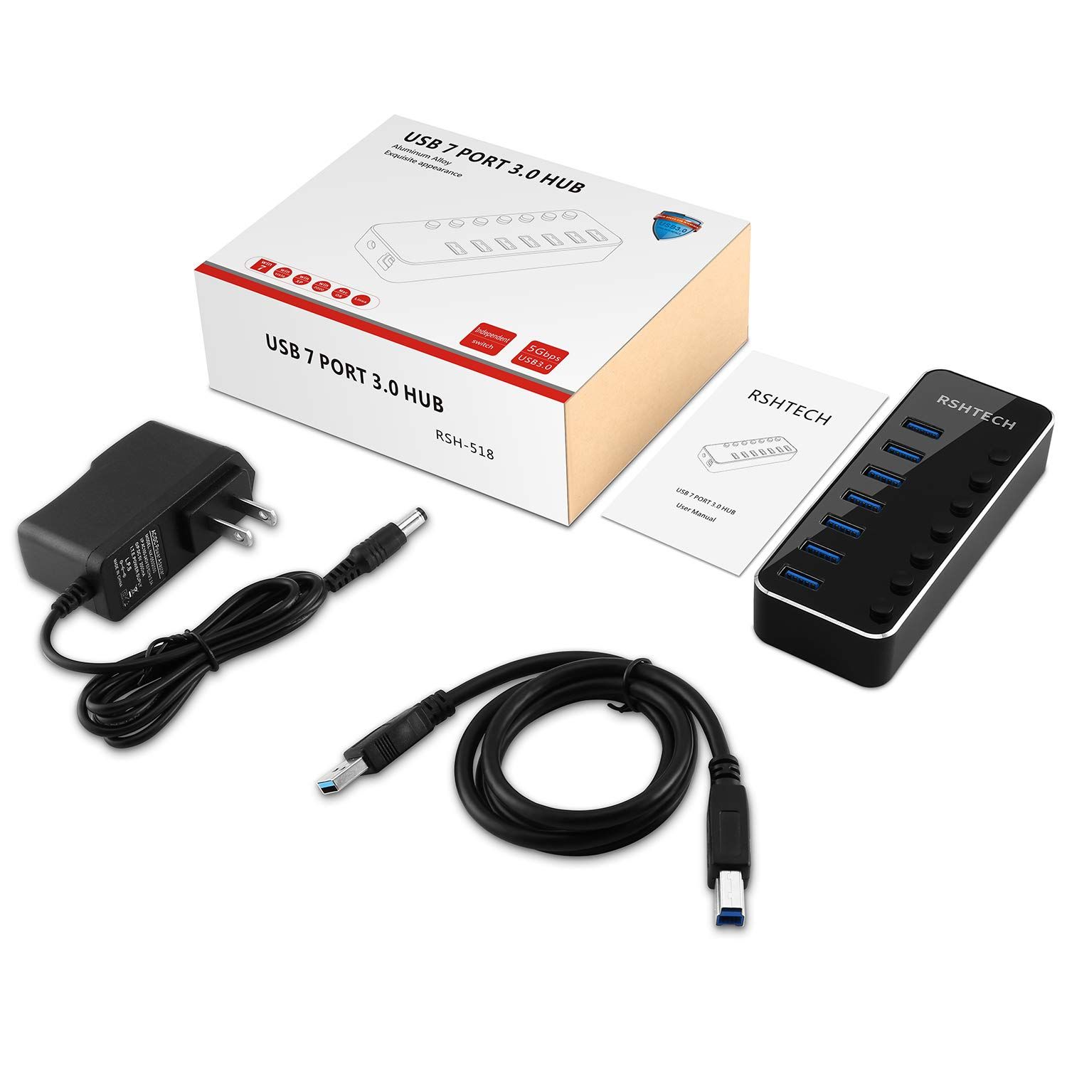 Rshtech Usb 3 0 Hub Powered 7 Port Usb Extender Aluminum Splitter With Individual On Off Switches 7 Ports